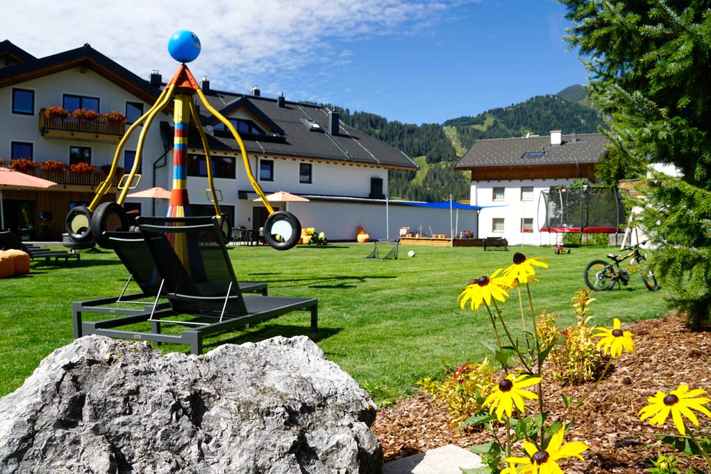 • Hotel Dreisonnenhof Fiss Spielplatz Wiese