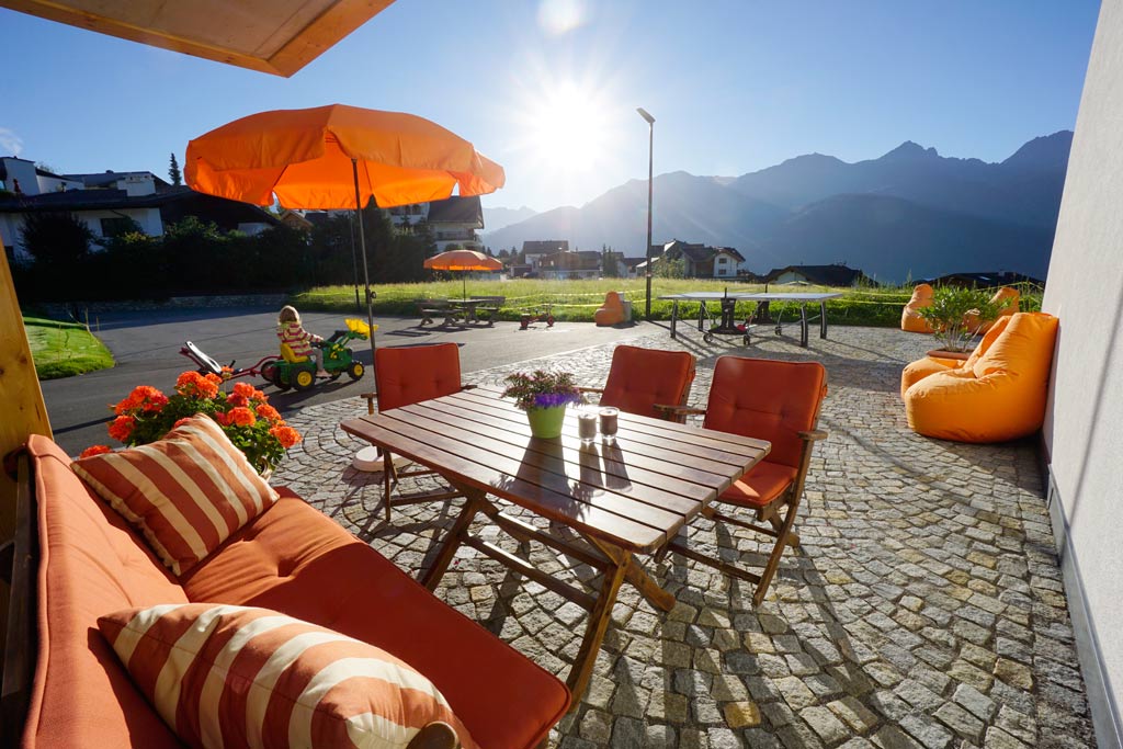 • Hotel Dreisonnenhof Fiss Spielplatz Terrasse