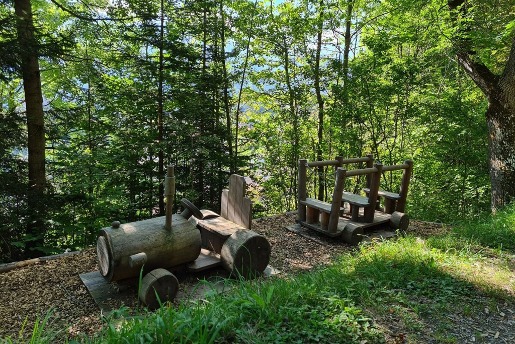 Rabuschl is a one-of-a-kind nature adventure park with a beautiful pond and suspension bridge. The playground, with swings, a slide, and a climbing wall, offers a great opportunity for kids to play and let off steam. Many grill stations and ample seating invite you to spend an afternoon grilling and enjoying the outdoors. The trail offers breath-taking views of the flower-covered meadows of the sunny plateau.