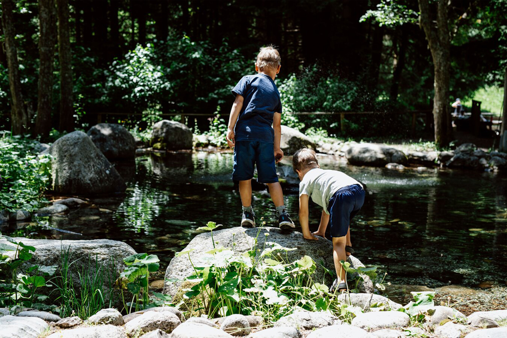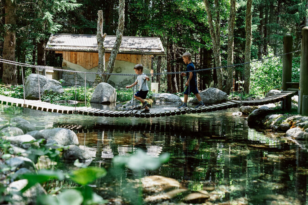 This short and very easy (1.5 km) adventure trail begins below the Komperdell middle station and winds its way around the nearby water reservoir back to where it begins.