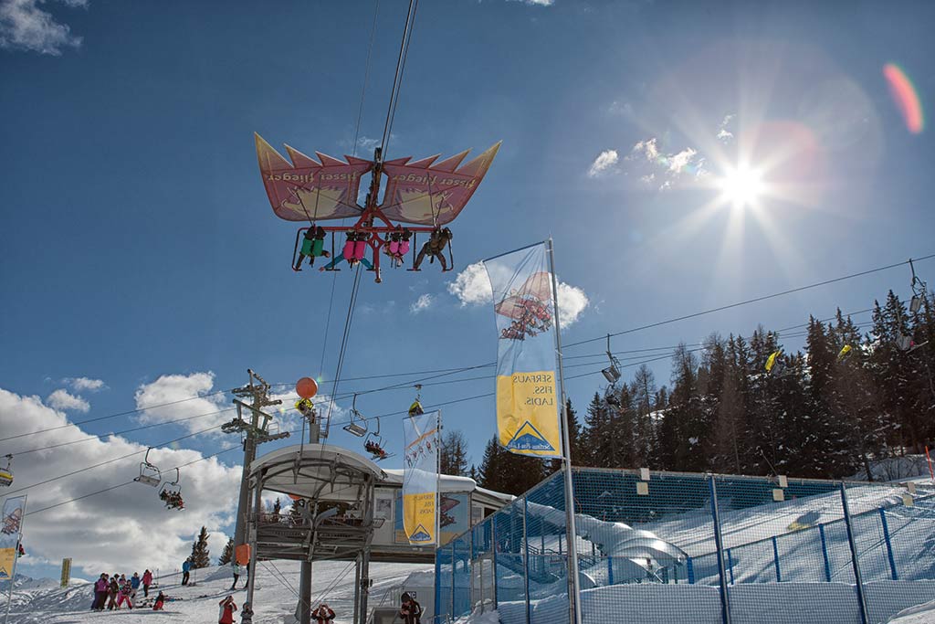 The Fisser Flieger offers flights Wednesday to Saturday from 1:00 p.m. – 4:00 p.m. It is even possible to fly at night through the starry sky – every Tuesday from 5:45 p.m. until 8:00 p.m. during night skiing.